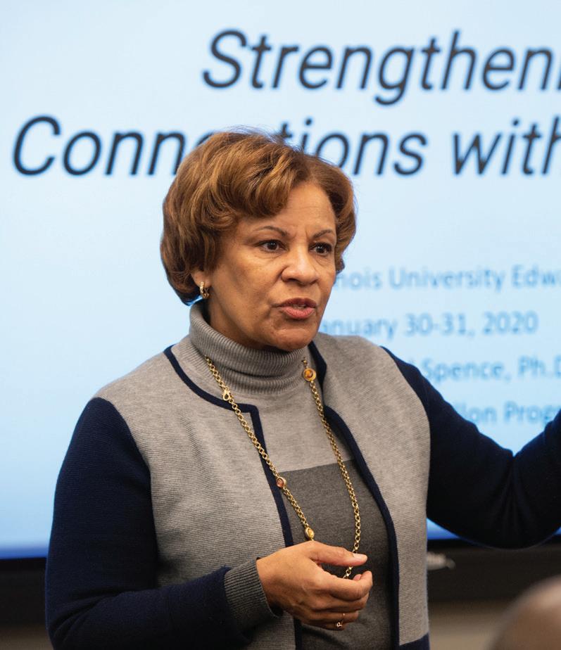 These were just a few of the many questions posed by Cynthia Neal Spence, associate professor at Spelman College and director of the UNCF/ Mellon Programs, who spoke January 31 at Southern Illinois University Edwardsville’s Center for Faculty Development and Innovation (CFDI).