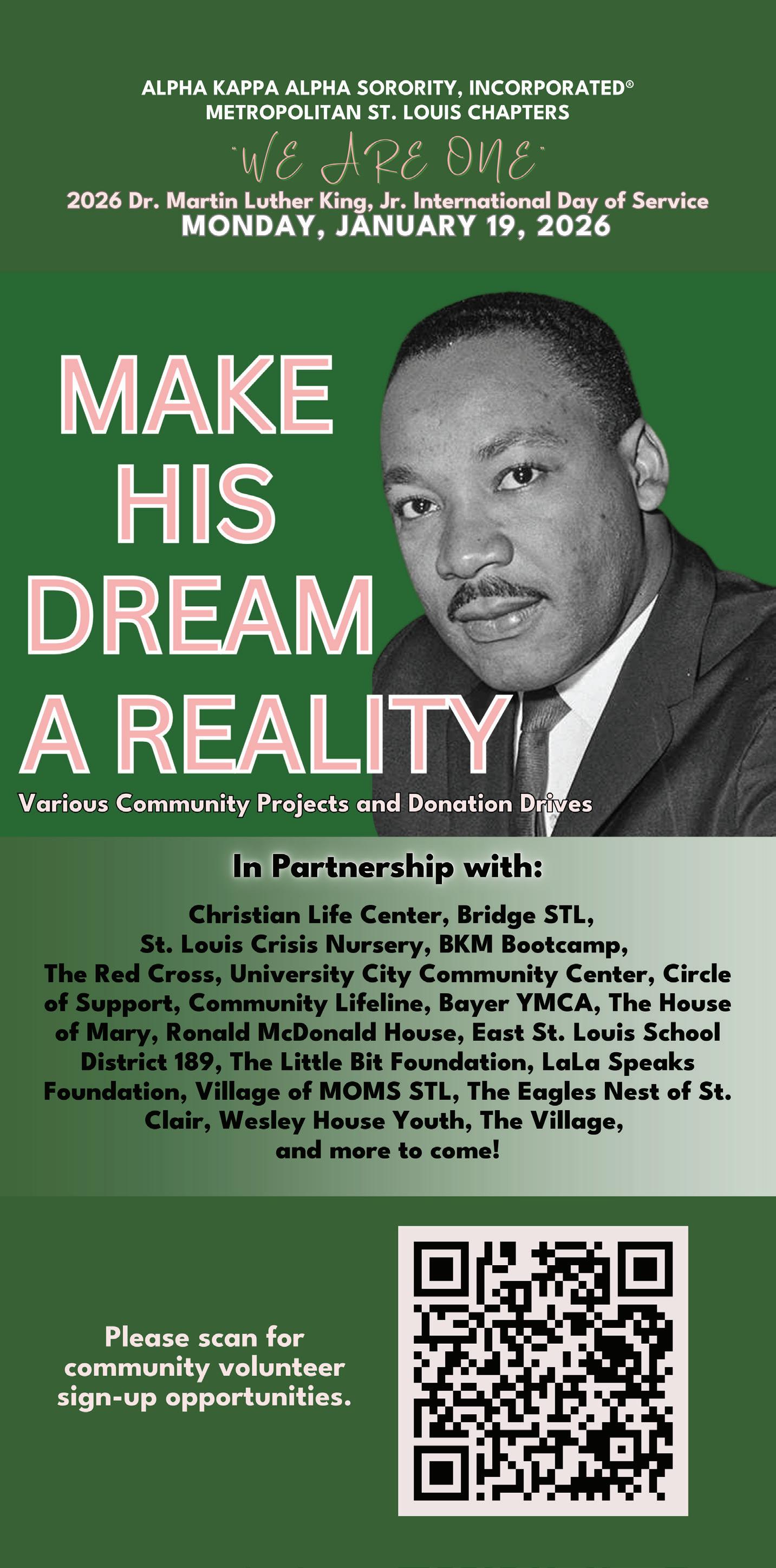 Joining to honor King are Centennial Christian Church; Fountain Park and Lewis Place Neighborhood Association; Alpha Phi Alpha Fraternity Inc., Epsilon Lambda Chapter and Foundation; Central West End Church; People’s Community Action Corp.; St. Louis Public Schools; The Jackson Law Firm; Democratic Committeewoman Yolonda “Yogi” Yancie; and Mission STL.