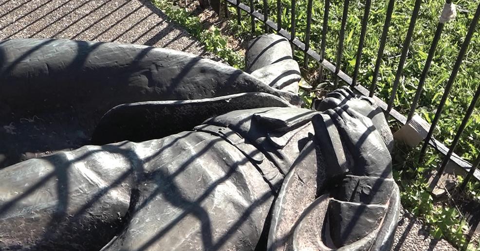 King’s 11-foot statue, which was installed in 1978, was severely damaged, and its refurbishment continues.