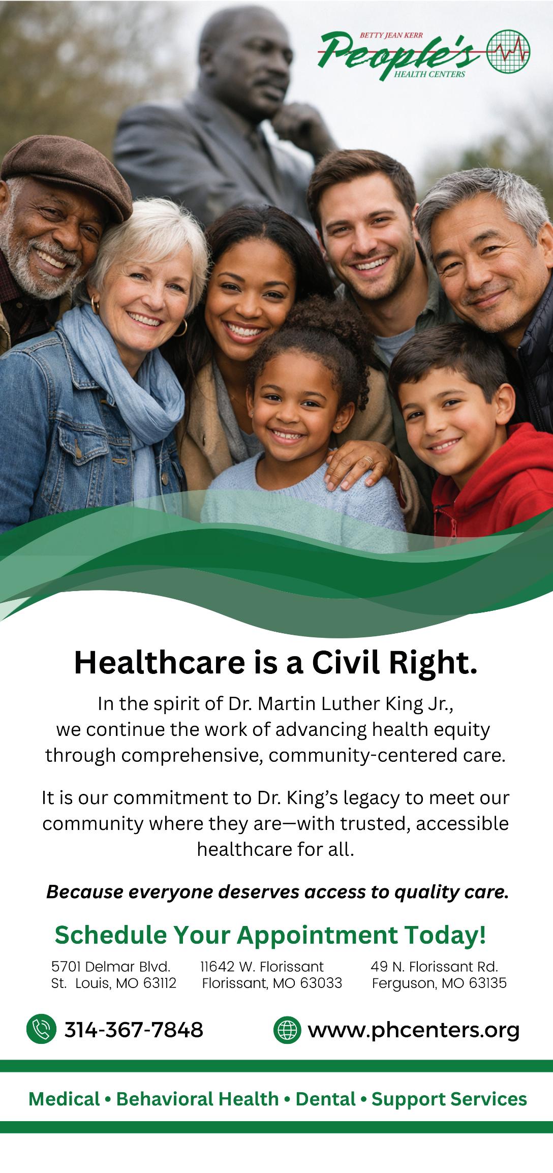Following the morning gathering, the observance will continue with an MLK Youth Educational Program from 11:30 a.m. to 4 p.m. at People’s Health Center, 5701