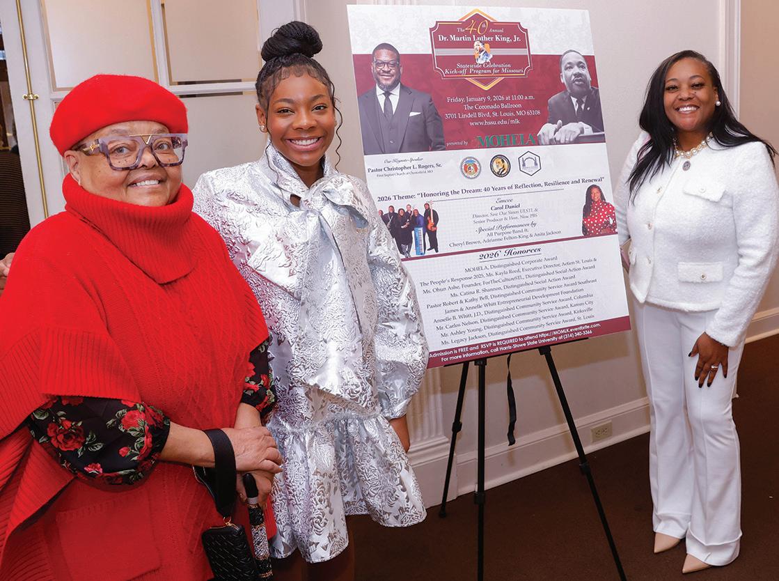 Marquita Norman with her granddaughter, Distinguished Community Service Award recipient Legacy Jackson and her mother Kynedra Ogunnaike at the Dr. Martin Luther King Jr. State Celebration Commission of Missouri 40th Anniversary Kick-Off Luncheon on Friday.
