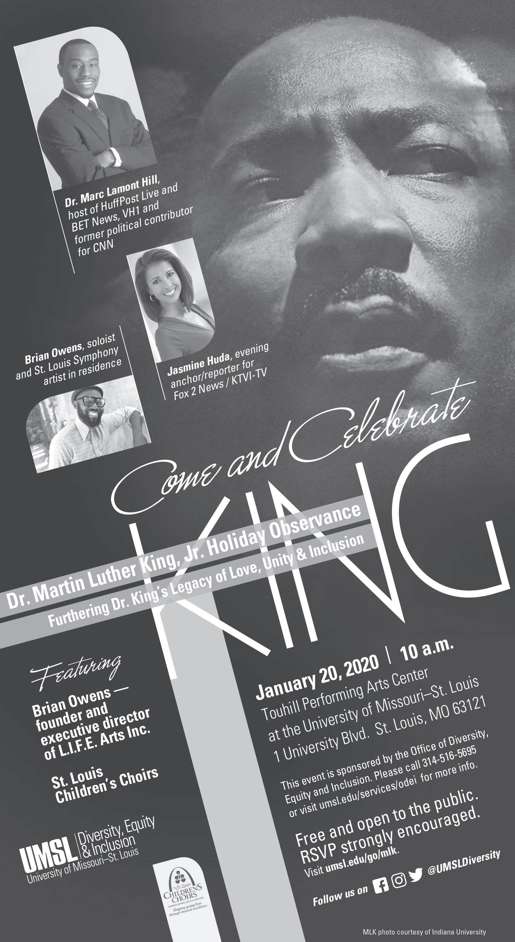This year’s theme was “Music…A Universal Stepping Stone Toward Peace.” Dwaun Warmack, Kelvin Adams, James Clark, Betty Thompson, Enterprise Bank and Trust and The Girl Scouts of Eastern Missouri were recognized for their contributions toward building the beloved community often referenced by Dr. King. City and statewide dignitaries offered remarks. But the crux of the program highlighted an element of the movement that doesn’t typically receive an adequate spotlight: the definitively defiant sounds of the creators of cool.