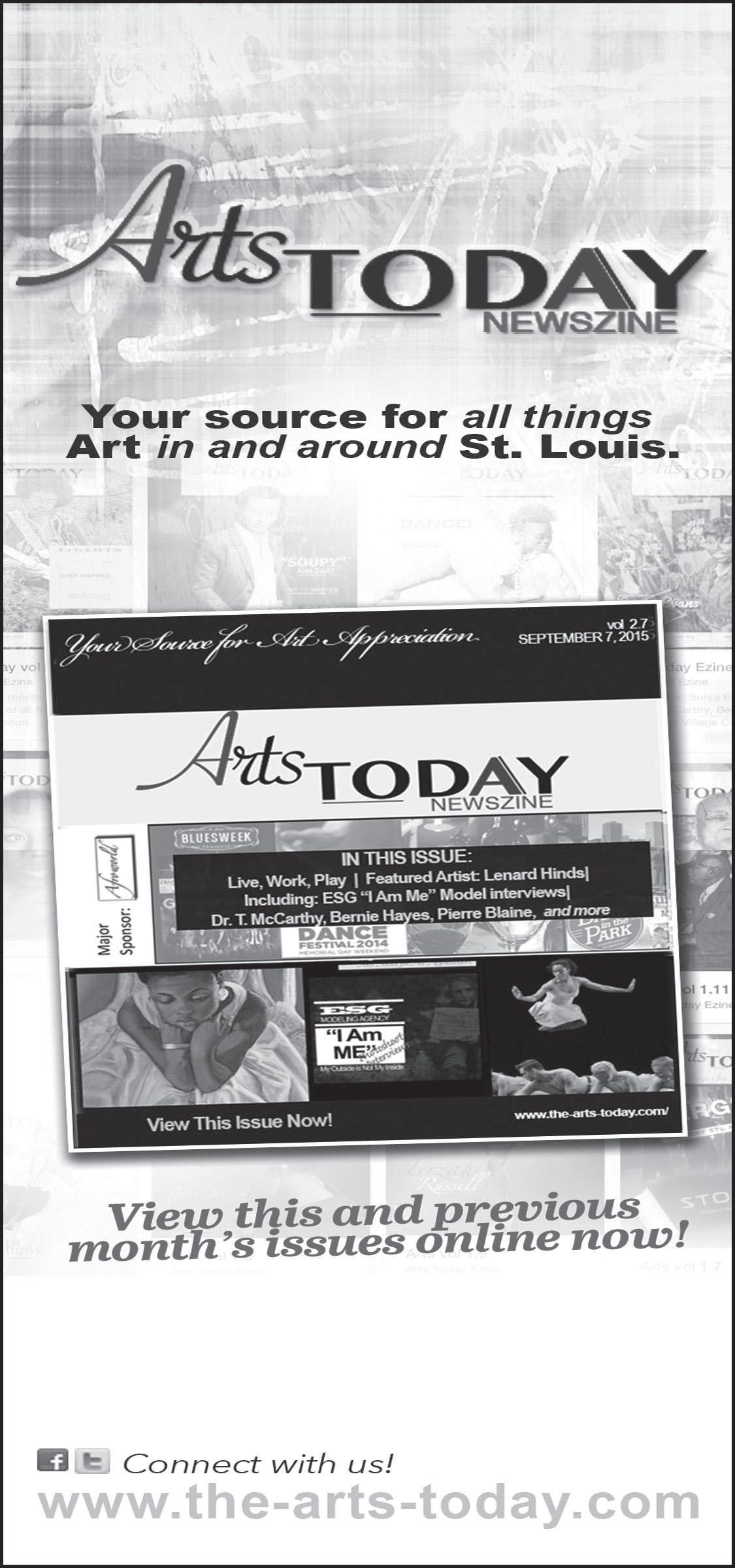 Through March 2016, PulitzerArts Foundation hosts Kota: Digital Excavations in African Art The exhibition examines a new digital database created by Belgian computer engineer and independent researcher Frederic Cloth to study and reveal the hidden histories of Kota reliquaries. 3716 Washington Blvd., 63108. For more information, visit www. pulitzerarts.org.
