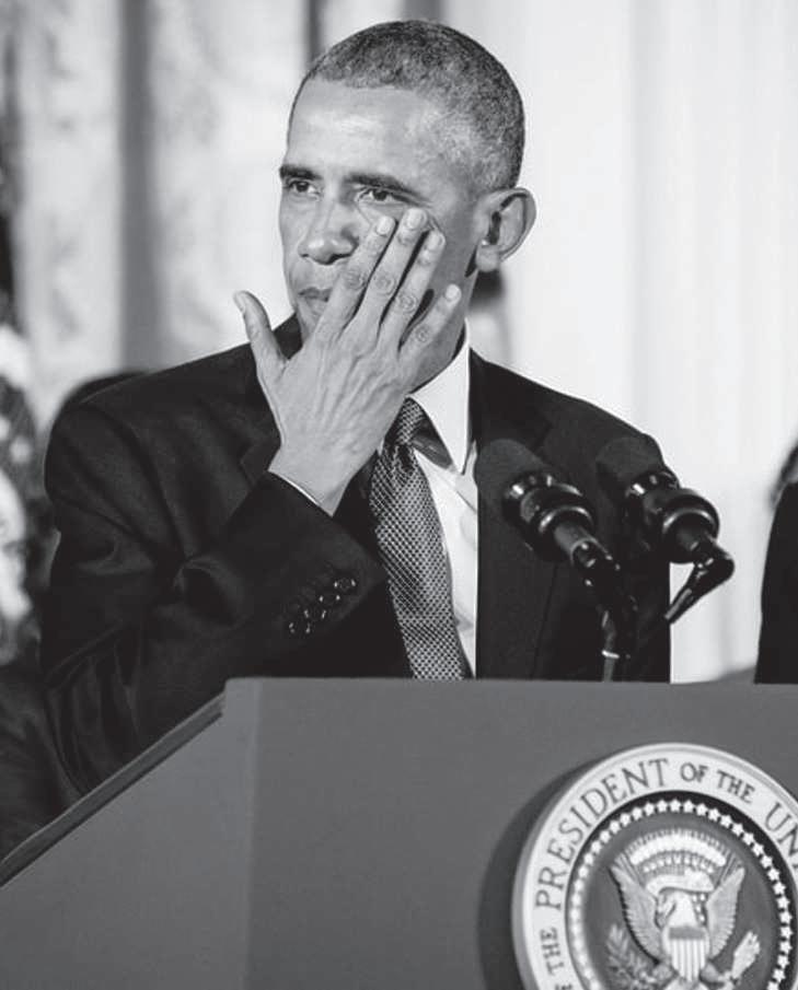 “We cannot, and I will not, allow our freedoms and constitutional rights to be swept away by this president. The time to fight back is now.” Fight back against what? Instituting simple background checks before anyone is able to buy deadly weapons in a country that averages more than one mass shooting per day? It’s enough to make one weep. President Obama wept while reflecting on the many tragedies – mass shootings as well as street homicides – that led to his executive orders.