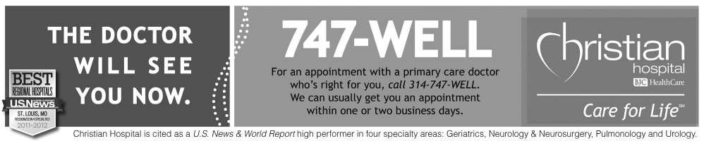 St. Louis ConnectCare offers walk-in services Monday through Friday, 8 a.m. to 7 p.m., Saturdays and Sundays, 8 a.m. to 5 p.m. and most holidays. For information, call 314-879-6300.
