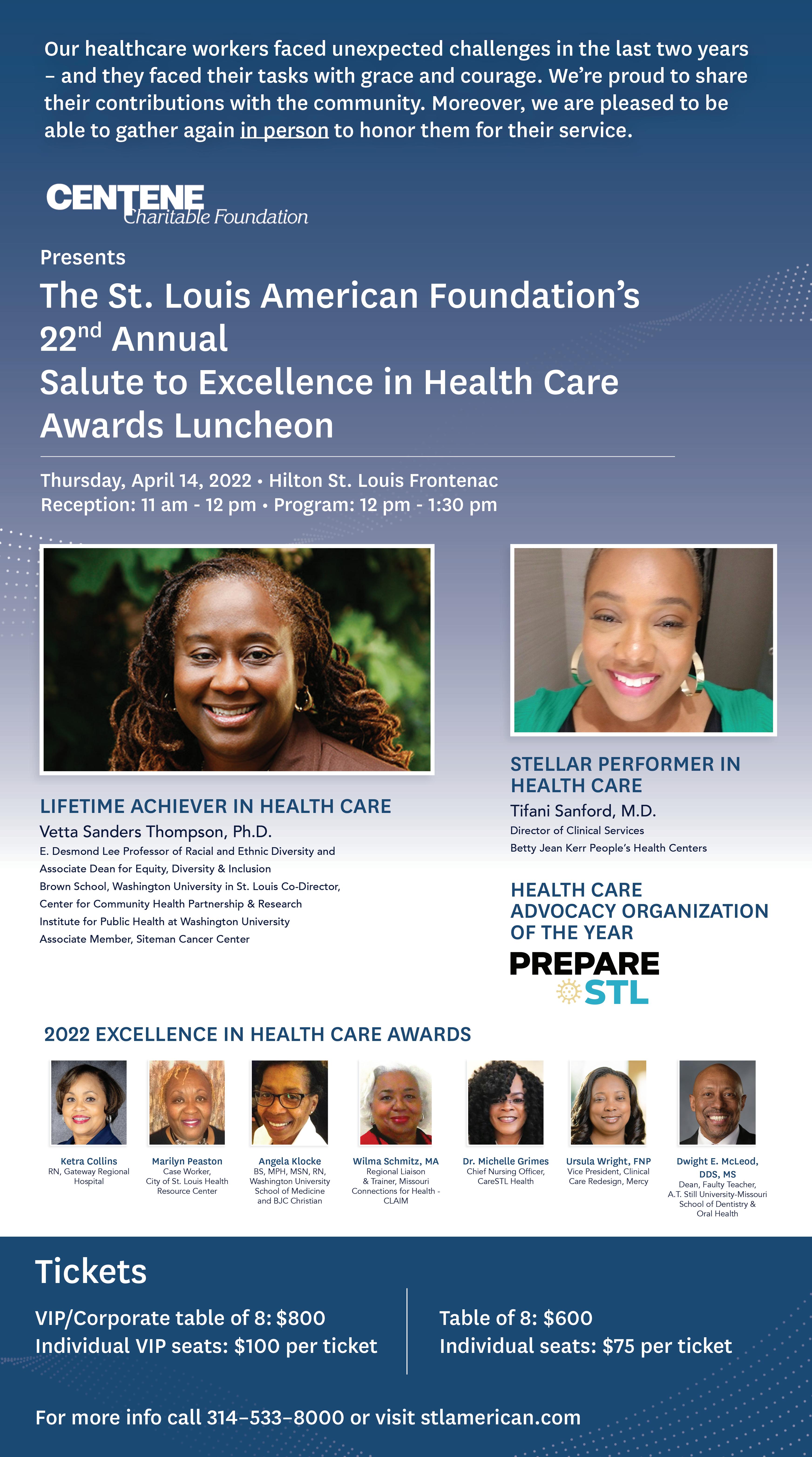 For its quality work and community health campaigns, PrepareSTL will be honored as the Health Advocacy Organization of the Year during the 22nd Salute to Excellence in Health Care on April 14 at the Frontenac Hilton.