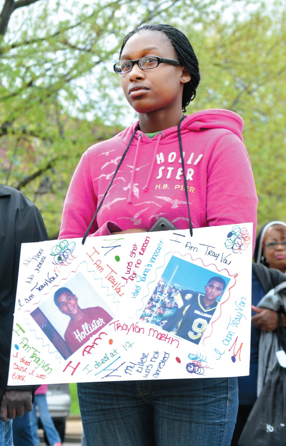 The St. Louis region responded to the killing of Trayvon Martin both officially and from the grassroots, both city and county, and on both sides of the river. On Friday morning, some 400 people marched in downtown St. Louis led by Lewis Reed, president of the Board of Aldermen, and featuring a number of young black male speakers. That evening, some 300 people gathered in Tower Grove Park in a public vigil organized by community member Rachel Lee. At both events, many people wore hoodies, as Martin did on Feb. 26 when the 17-year-old youth was shot and killed in Sanford, Fla. by George Zimmerman, 28. Many brandished cans of iced tea and bags of Skittles, which the youth had purchased at a convenience store before being pursued by Zimmerman, who decided the