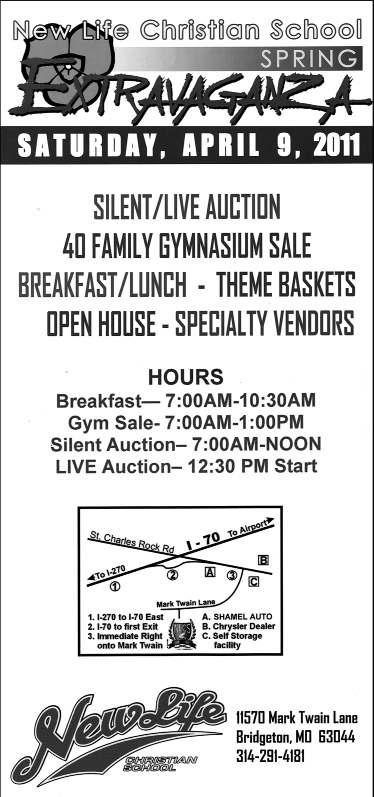 New Jerusalem Temple Church of God, 8204 Page Blvd., Vinita Park, MO 63130, will present A Gospel Skate at the St. Louis Skatium, 120 E. Catalan Ave., St. Louis, MO 63111 at the corner of S. Broadway Ave. Friday, April 8 from 5:30-9:30 p m.