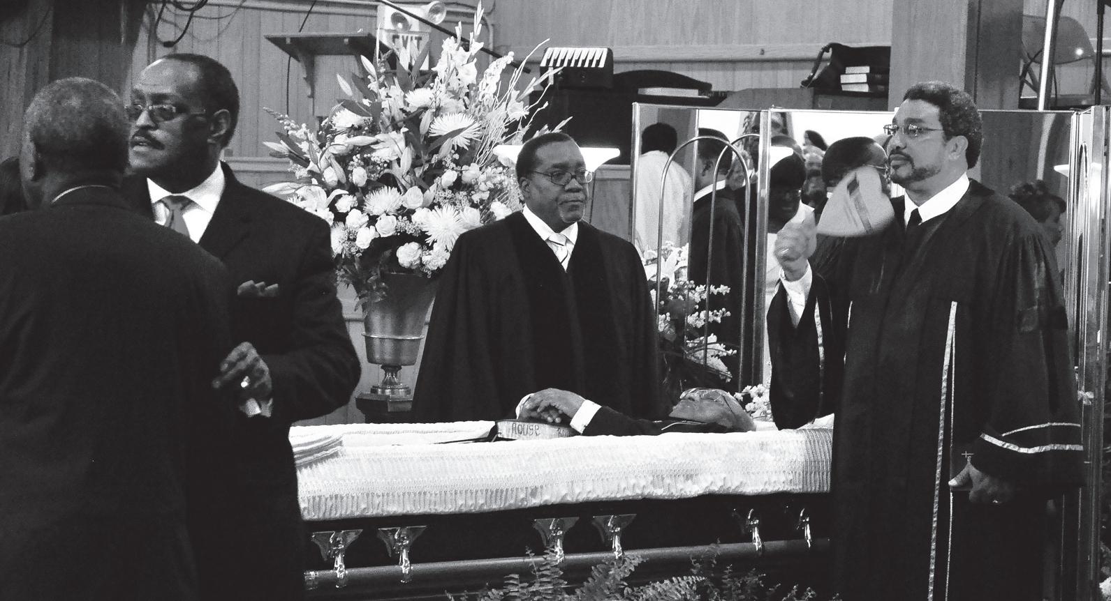 The East St. Louis community lost a giant civic and spiritual leader with the passing of the Rev. John H. Rouse on March 12, 2011, after suffering a heart attack. Rouse, 70, was the long-time pastor of Mount Zion Missionary Baptist Church, at 2235 Bond Ave., East St. Louis, IL. Ministers Cecil Johnson and Willie Seals stand guard as mourners file by as the Min.