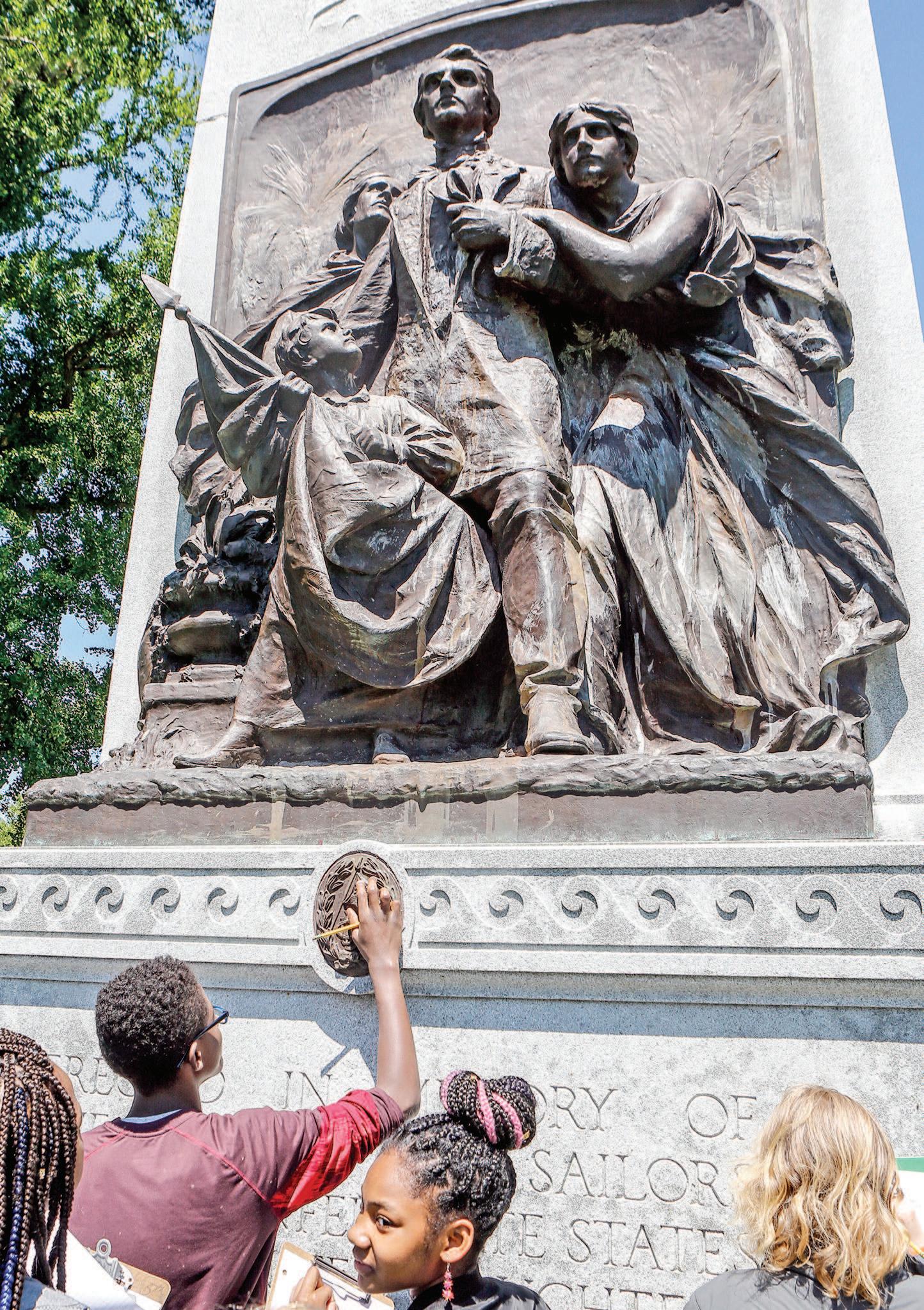 fifth grade class at New City School visited the Confederate Monument in Forest Park on Friday, May 5 to learn about its past and imagine its future.