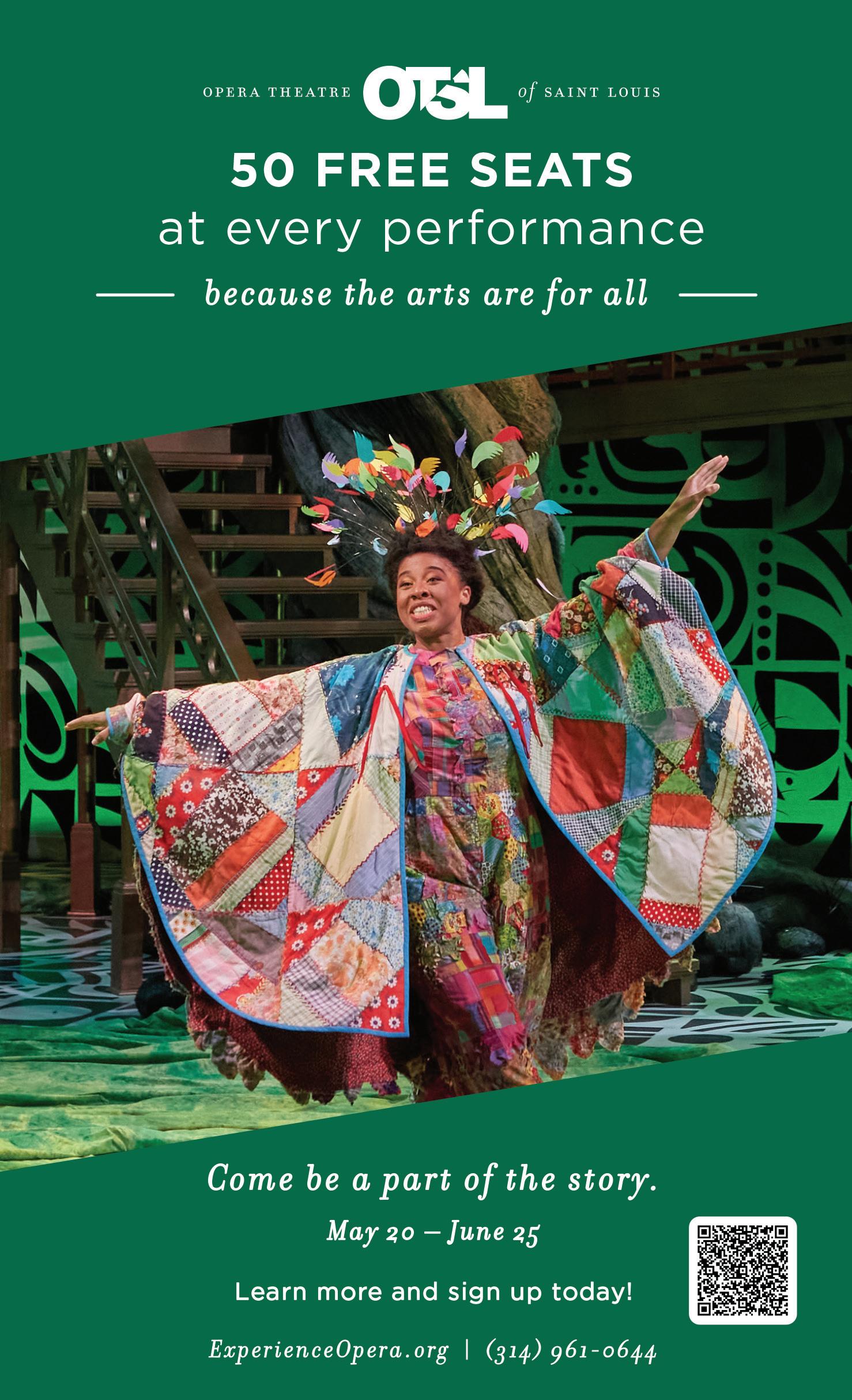 Opera Theatre of Saint Louis’ production of Treemonisha will run May 20-June 24 at the Loretto Hilton on the campus of Webster University. For tickets and or additional information, visit https:// opera-stl.org/