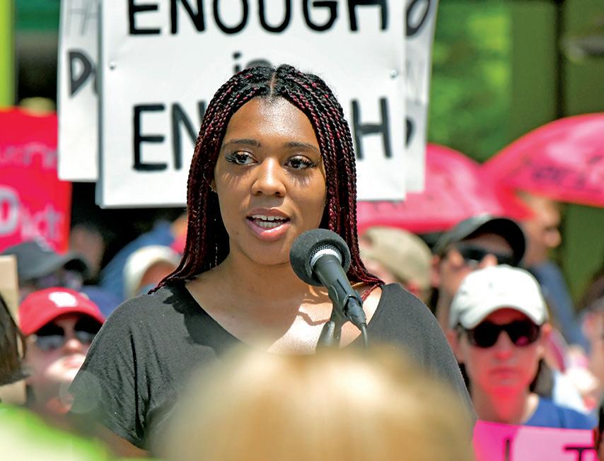 St. Louis Public Schools Board of Education member Alisha Sonnier said, “Why do we elect people who won’t even name abortion? How does it make sense that someone who can’t even name abortion will advocate for and protect it? Speaking at the abortion rights rally Saturday, May 14, in Kiener Plaza.