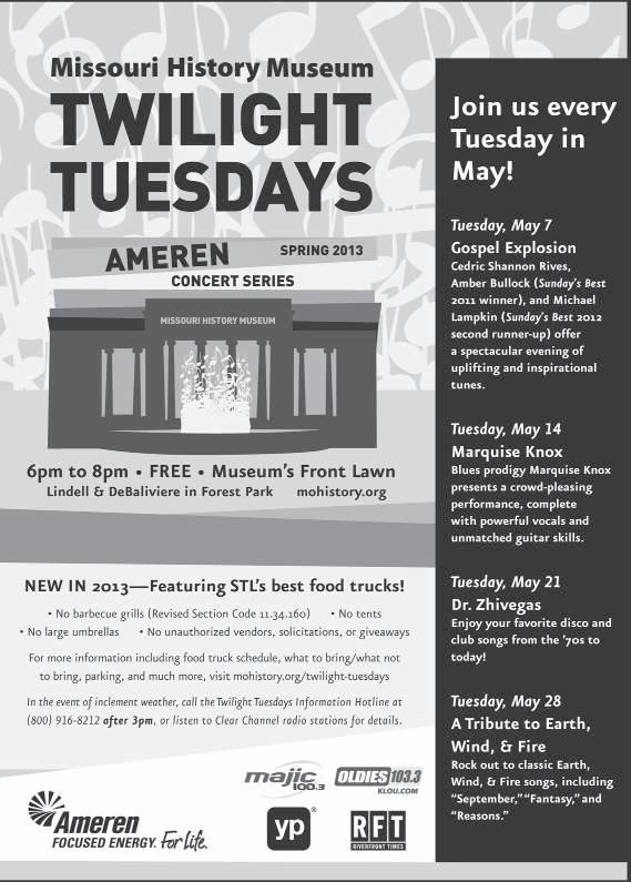 Sat. May 18, Community Women Against Hardship’s 9th Annual Walk & Health Fair, Tower Grove Park (Grand Entrance) Son of Rest Shelter; fun family activities to encourage a healthier lifestyle. For more information, call 314-289-7523 or visit www.cwah.org.