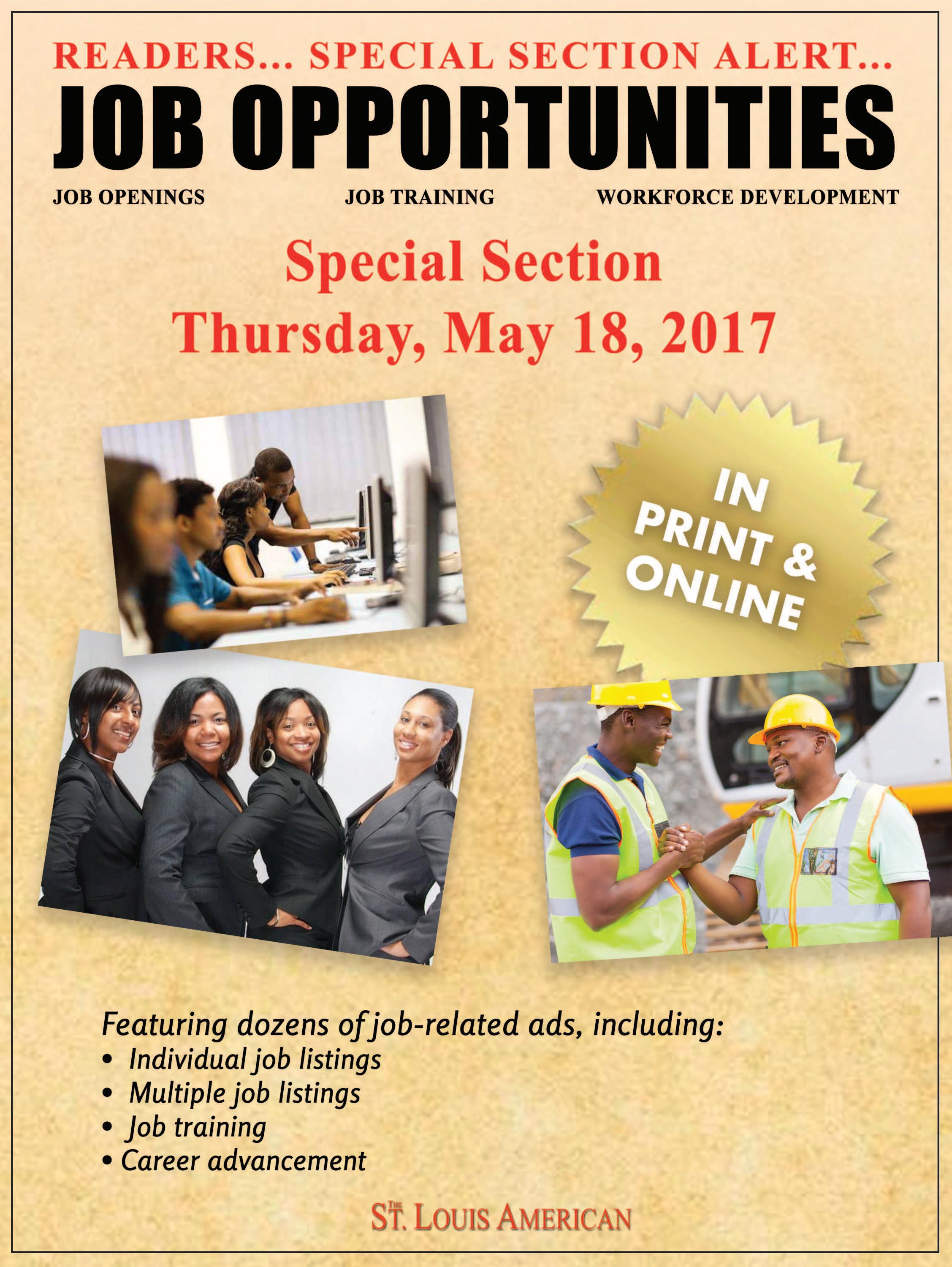 Receive emergency/non-emergency calls. Dispatch police, ire, or EMS. Irregular hours and shits. REJIS Certiication, exp w/ Global CAD, ProQA (EMD) desirable. $19.96/hr. Closes May 22, 2017. Apply:www. kirkwoodmo.org or call 314/984-6975 for a paper application. EOE