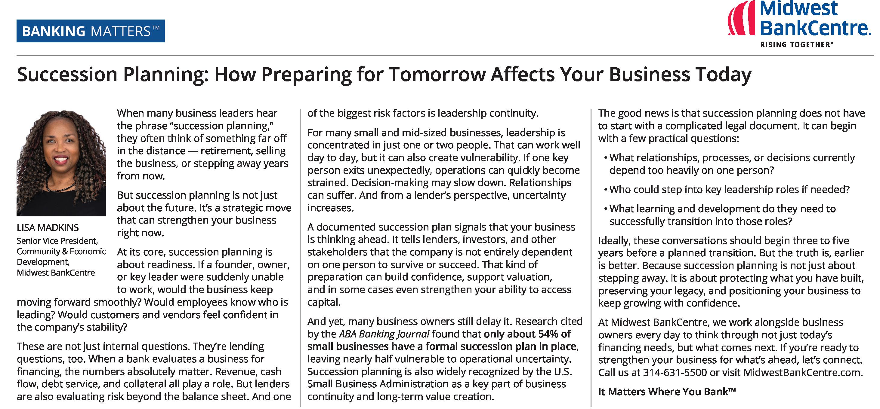 By Orvin T. Kimbrough Chairman & CEO, Midwest BankCentre