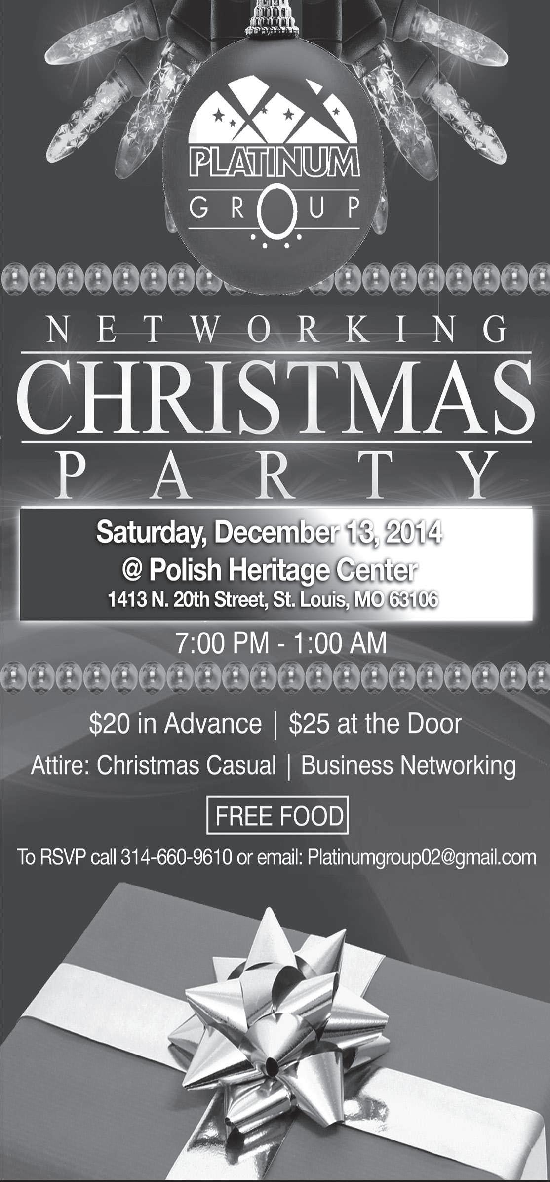 Vu II Cafe, 2805 Target Dr, St. Louis, MO 63136. Two for one drinks (5:30 - 8 p.m.), food available to buy from kitchen, free parking, no cover charge and limited reserved seating available until 10 p.m. Please RSVPASAP with B. Louis at 314-385-9843.