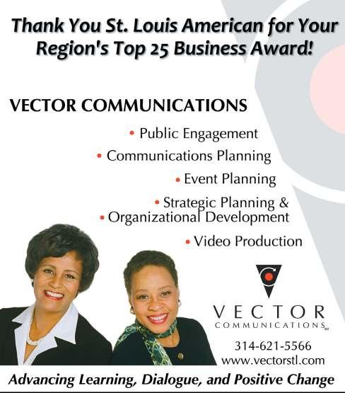 international AVA award for outstanding graphics/design and video production for its video on the City of Louis. In 2010, Vector’s public engagement and communications consulting on Metro’s longrange plan garnered the transit agency international recognition. It received first runner-up in the innovation category from the International Association of Public Participation (IAP2). In 2009, the City of St. Louis honored Vector with its “Business of the Year” award and in 2008, Wells Fargo Bank and the National Black MBA Association presented Vector with its “Entrepreneur Excellence Award.” This national award was based on “business performance, innovation, growth, and personal service to the community.” The St. Louis Minority Business Council has also recognized Vector as “MBE (Minority Business Enterprise) of the Year” in the category of professional services.