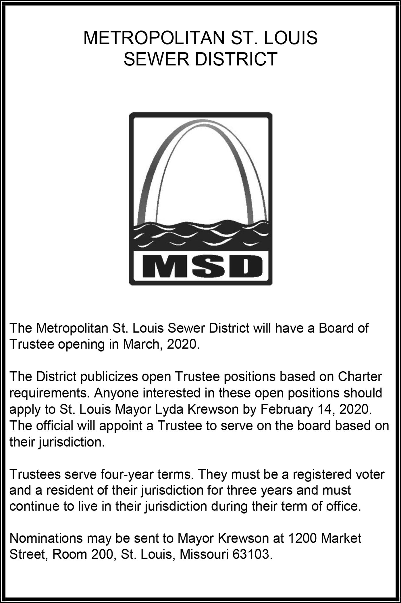 Metropolitan St. Louis Sewer District is an Equal Opportunity Employer.
