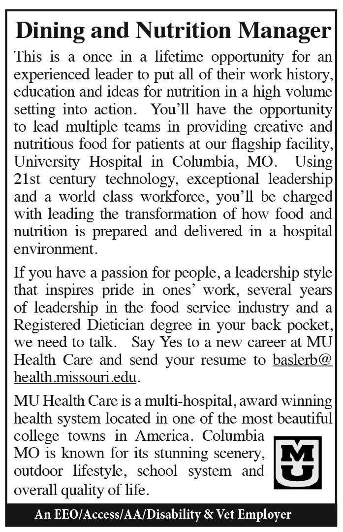 he Alzheimer’s Association, St. Louis Chapter has an opening for a FT 40 hrs/ week Client Services Support Specialist. he position is responsible for clerical and administrative support for our Client Services team. Goals are to signiicantly scale up database efectiveness and internal and external customer service, enabling the Chapter to fulill its mission. Minimum requirements include 3 yrs of demonstrated experience working with database mgmt. Must be proicient with Microsot Oice applications and have excellent communication & organizational skills. Please email cover letter with salary requirements, resume and a min of 2 professional references to stl-hr@ alz.org
