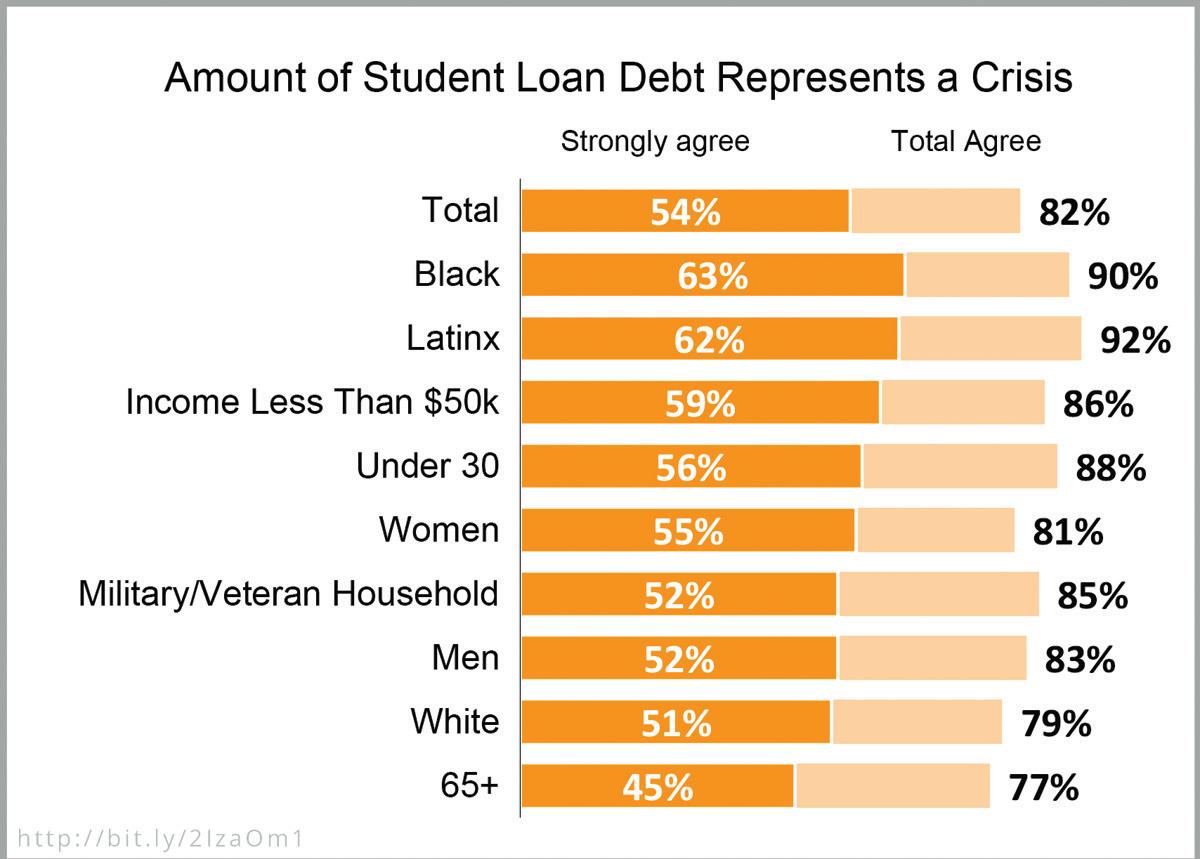 When likely voters across the country were recently asked their opinions about student loan borrowing, 82% agreed that the still-growing $1.5 trillion debt is a national crisis. Even when partisan affiliations were included, the solid concern for this unsustainable financial burden held strong: 74% of Republicans, 80% of independents, and 90% of Democrats.