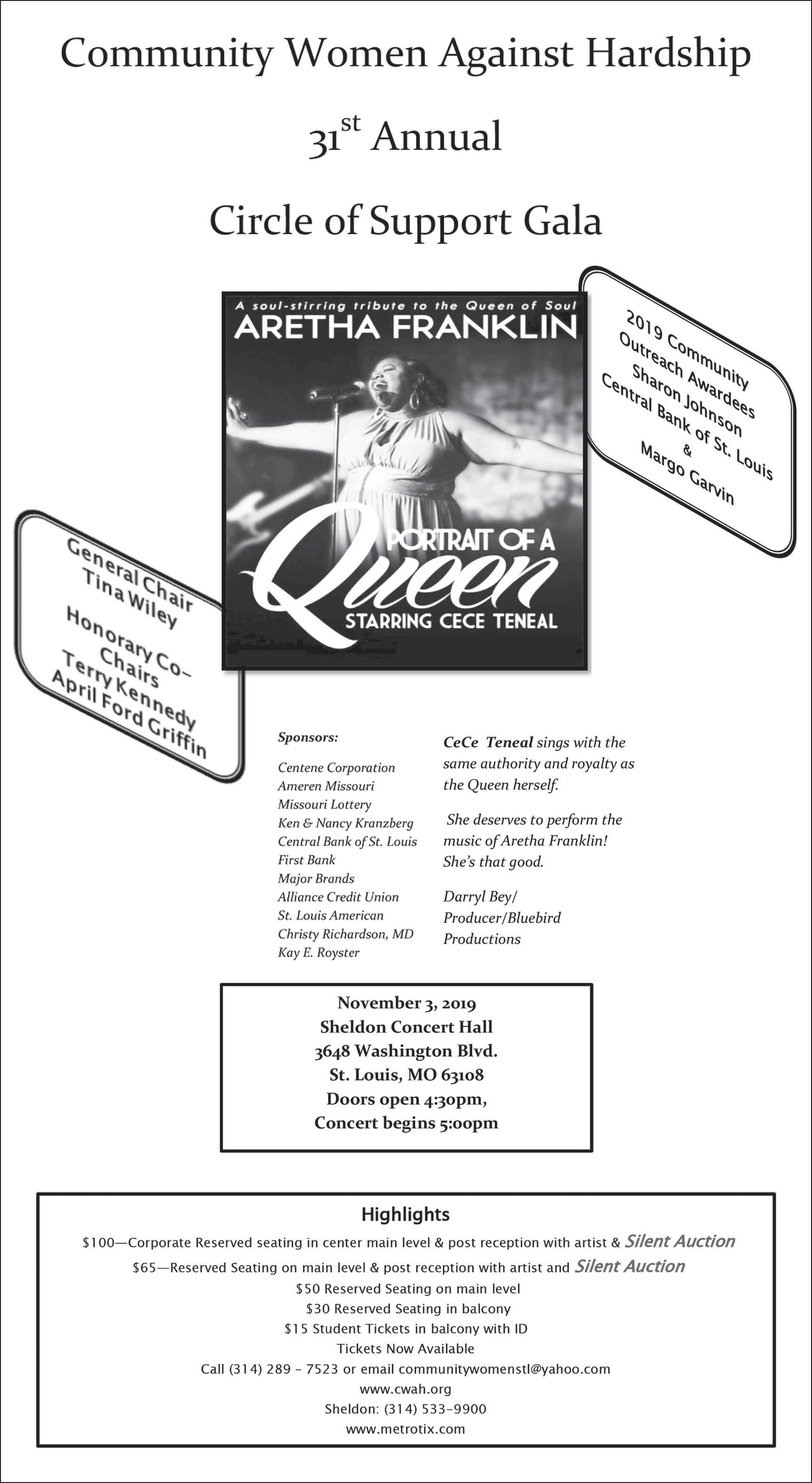 The City of St. Louis Department of Public Safety is seeking proposals from qualified not-for-profit providers to implement a violence prevention alternative program in the City of St. Louis. To obtain a copy of the RFP, please visit https://www. stlouis-mo.gov/government/ procurement/index.cfm . The RFP will be listed under “Active RFPs, RFQs and RFIs.” Proposals must be received by 12:00 Noon CDT on Wednesday, October 30, 2019.
