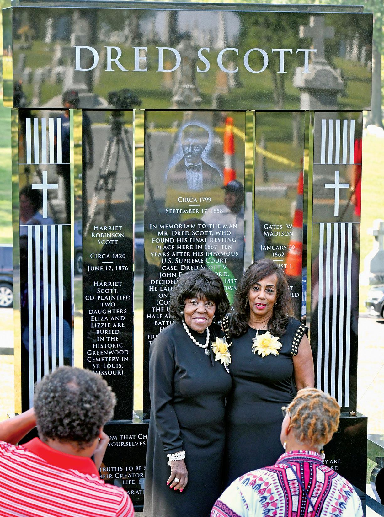 Dred Scott, a fighter for freedom who who helped inspire the struggle for Black American legal and civil rights, now has a monument fit for his contribution to the nation’s history. Scott’s wife, Harriet Robinson Scott, will have a new headstone celebrated at her resting place in Greenwood Cemetery in Hillsdale on October 14 the ceremony begins at 11:00 am. Family, friends, and community members gathered on Saturday, September 30 at Calvary Cemetery, 5293 West Florissant Avenue for the unveiling of headstone. The charcoal-colored monument stands 9 feet tall, and is etched with Bible scriptures and a picture of Scott. Before the new monument was erected, Scott had a simple gravestone that stood two feet tall for the past 66 years.