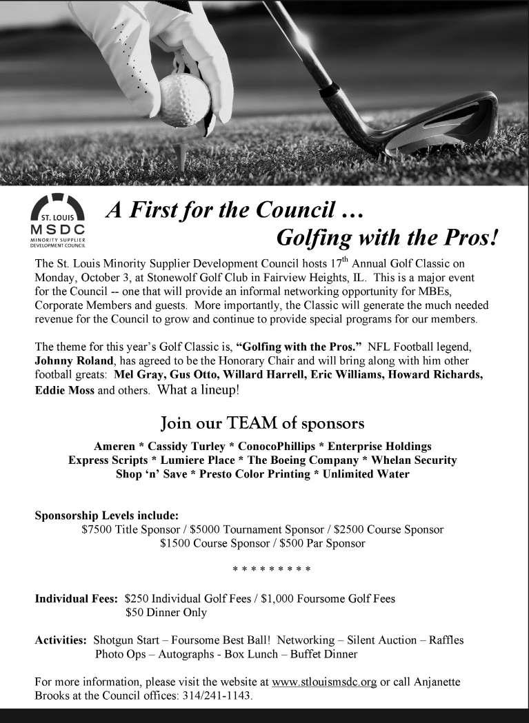 Fri. Oct. 14, 6 p.m. – 9 p.m. – Saint Louis ConnectCare Cocktail Party, annual fundraising event for St. Louis ConnectCare, at Highland Golf and Tennis Center in Forest Park. Event includes entertainment, heavy hors d’oeuvres and an open bar; silent and live auction. Ticket prices are $100 –Regular; $125-Friends; and $150 –V.I.P. For more information, contact Rosetta Keeton at 314-879-6231 or rxk2630@stlconnectcare.org.