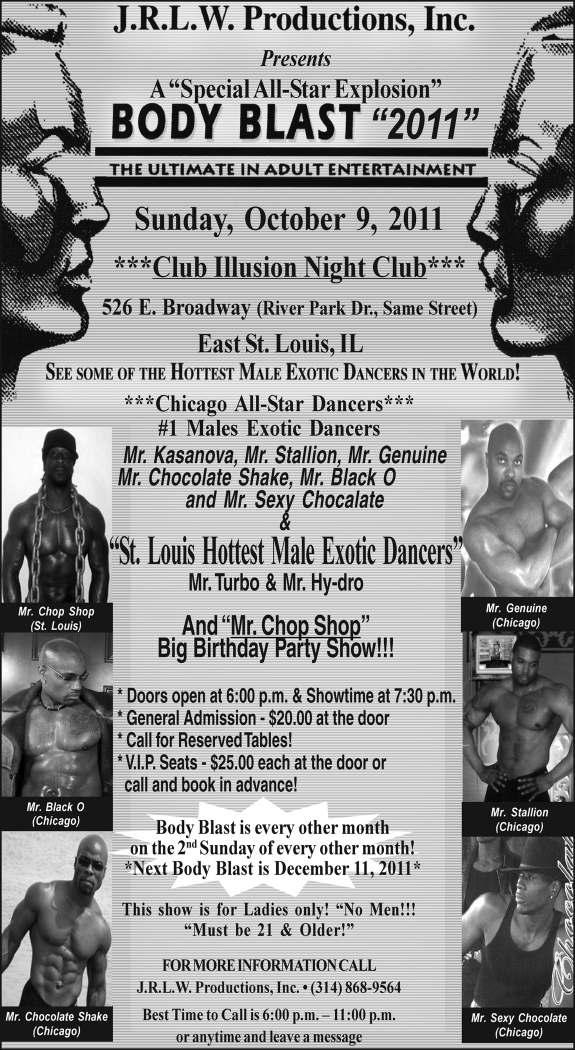 Takin’ It. I was taken back to the days of high top fades and inger wave freezes when I went to the Take 6 concert at Jazz at the Bistro Thursday night. As I sat at a table and ordered a big steak dinner, I was prepared to be wowed by the timeless harmonies that made me fall in love with these guys back when I was Cabbage Patchin’ all over the city limits. The guys piled onto the stage givin’ bubblegum smiles and outits that apparently had been freshly bought from Buckle. Doo-wops and inger snaps illed the night as they touched on their staples and those of others. The highlight of the night was their old school medley that included Michael Jackson’s “Rock With You,” “Do You Remember The Time,” and “Human Nature” as new member Khristian Dentley did an impeccable imitation with Moonwalk to boot. Vocal likenesses didn’t stop there as they harmonized on a Michael McDonald cut as Brian McKnight’s older brother Claude, did a great Earth, Wind, and Fire spin on “Can’t Hide Love.” Maurice White would have been proud. As the guys went through more selections and ended with a battle of mouthed instruments, the night will stay as the jazziest one I have had in a while. Dancin’ down the house. My favorite time of the year is here. Not because of Gateway Classic of Taste of St. Louis but because I know that the house party of all house parties goes down. What am I babblin’ about? The annual Kevin Johnson/Vincent Flewellen birthday bash at the St. Louis Post-Dispatch’s head pop music critic honcho’s house last Friday. When I entered his lovely home, there was so much gyratin’ and carryin’ on, I thought the foundation was going to collapse. Every notable face you can think of in the city was perched and in jubilant form for this event. DJ Nune spanned classic funk hits as a gaggle of party hoppers shook their shapes on cue. My favorite, James, returned this year and taught the masses how to really do it. With a few featured shimmies and 1-2 steps, he was deinitely the one to watch on the dance loor. With a plethora of food and drinks, I was in heaven. As I pranced around the place with a small party plate full of one of everything, I felt so lucky to be invited to this exclusive humdinger! Let’s just say I closed the place. Witnessing many that have sweated out of their shirts and hair extensions, this party remains one of featured events of the year! Happy birthday Kevin & Vincent!