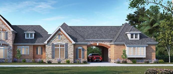 Adult 1 1/2 story, 4 bedrooms, 3 full baths, 1 half bath, hearth room. Approximately 4,850 square feet. Optional porte cochere available.