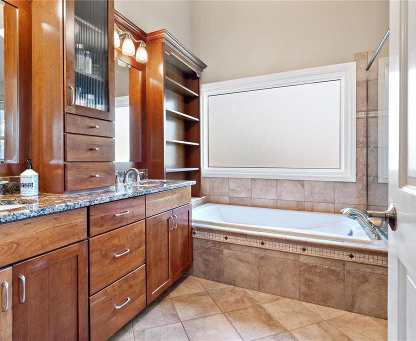 Welcome Home! 1.5 story Atrium. 6 bedrooms, 4+ bath, 3 level custom home on nearly 2 acres. Cul-de-sac lot! Main floor Mstr Bedroom suite w/bay windows, walk-in closets. En-suite has double bowl vanity, make-up area, extensive lighting, marble shower, sunk-in marble jetted tub. 2 story arched entry w/marble flooring, formal Dining w/Butler’s Pantry, Palladian win dows in the Great Room, 20’ vaulted ceilings, gas fireplace w/Barcelona stone surround, can lighting & wet bar. Eat-in Kitchen with 42” maple cabinetry, appliance garage, walk-in pantry, custom appliances, double ovens. All Season room overlooks the gorgeous back yard w/in-ground pool, 24’x12’ pool house w/ HVAC, composite deck, new hot tub, 3-car side entry garage. 8’ tall Butler doors, magnificent staircase & balcony. Central vac, Hearth room w/gas fireplace, French doors into Den w/cus tom millwork. New high efficiency gas hot wa ter heaters, new garage door openers w/key pad entry. Fully drywalled, insulated, & paint ed garage.