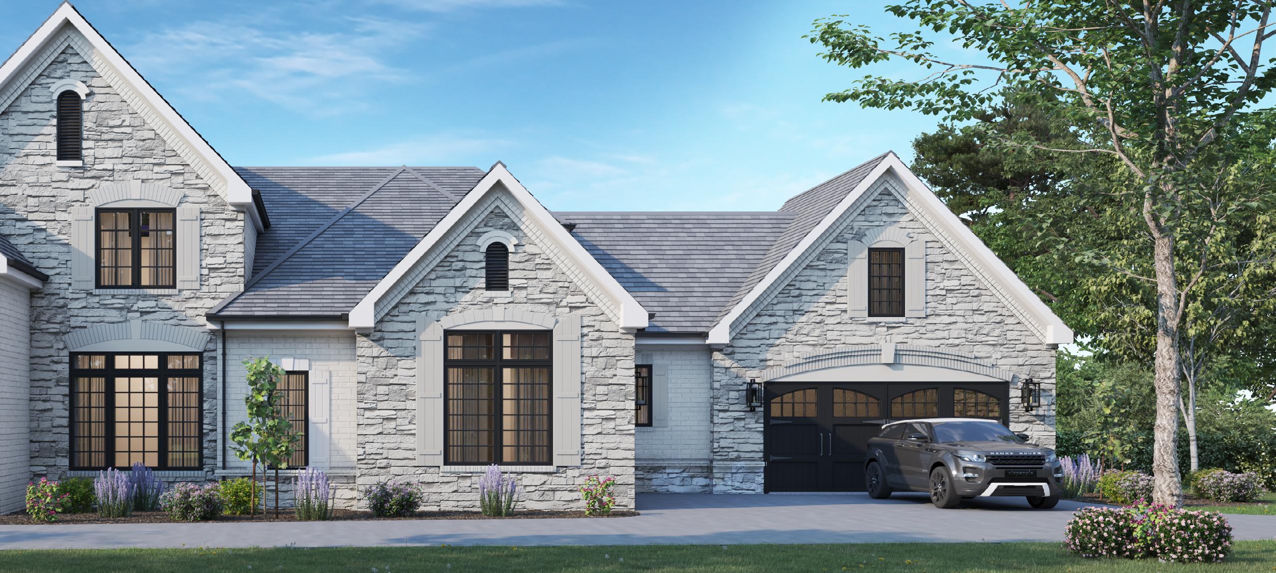 Adult 1 1/2 story, 4 bedrooms, 3 full baths, 1 half bath, hearth room. Approximately 4,850 square feet. Optional porte cochere available.