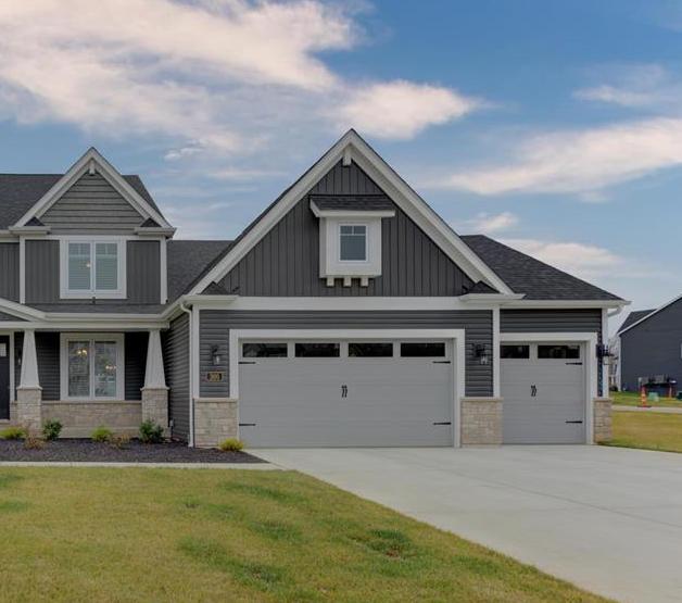 Adult 1 1/2 story, 4 bedrooms, 3 full baths, 2 half baths, hearth room. Approximately 4,259 square feet. Optional porte cochere available.