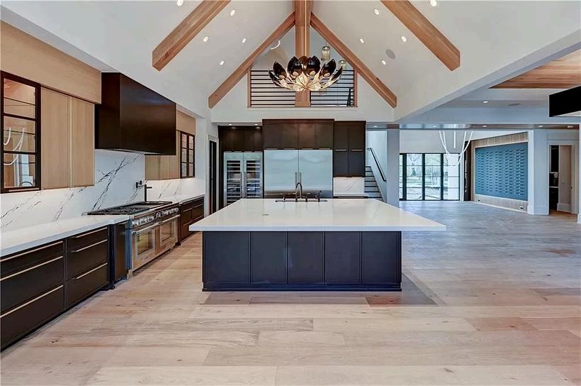 Chic-Luxurious custom-built new construction 1 5 Story in a coveted Leawood location! Flowing layout with soaring kitchen/great room ceilings This remarkable find sits on over an acre property & offers 6beds, 6baths, (2)1/2 baths, 5 car garage As you enter the front door wall of glass system, spectacular wine wall on the left & all glass ahead displaying the WOW outdoor retreat showcasing a 25'x63' gunite swimming pool, 7x7 separate spa & fire pit setting Trophy kitchen featuring 10x10 island, custom cabinets with high end appliances A spacious full-service caterer's kitchen to make your special events easy Walking upstairs on the marble treads to the second floor You begin with a beautiful loft space-perfect for kids, all 4 secondary bedrooms up are oversized with private baths/closets No walking downstairs with laundry, the 2nd-floor laundry room will take care of that Coming out of the pool, you can access the conditioned pool pavilion for bathroom access & out of the sun for relaxation Built in BBQ station off great room near pool
