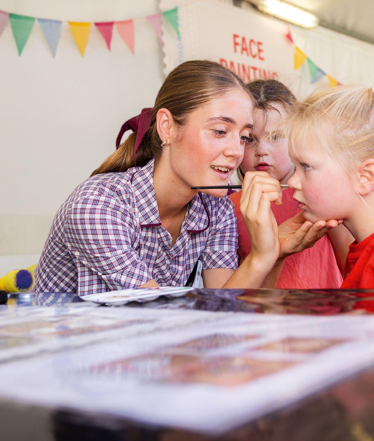COVER: Hackett Prefect Imogen Radalj painting Pre-primary student Iona Caha’s face at our 105th Birthday Fair.