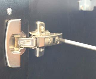 Slide the end cap on the rail to access the adjustment hole. Insert screwdriver into the hole and rotate gently to adjust the drawer front tilt.