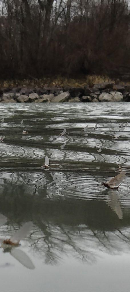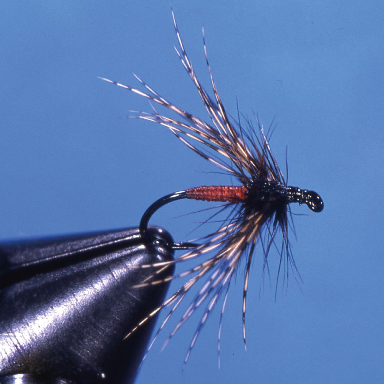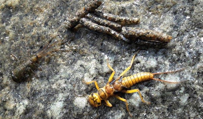 Ein sehr genauer Blick ins Wasser oder in den Mageninhalt eines frisch gefangenen Fisches verrät, was dieser zuletzt gefressen hat. Im Bildbeispiel eine besondere Steinfliegenart, die „Needle Fly“. Nach dieser Vorlage fertigt der tüftelnde Fliegenfischer daheim am Bindetisch jene Muster, die er beim nächsten Fischgang ans Ende seiner durchsichtigen dünnen Angelschnur bindet.