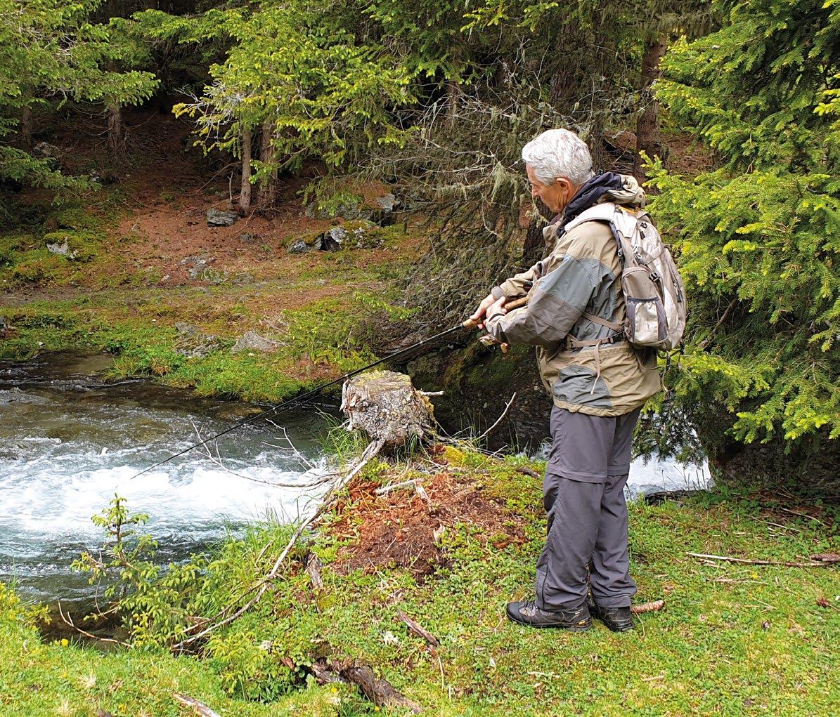 In einem naturbelassenen Bach schwimmt in fast jedem Gumpen mindestens eine scheue Bachforelle. Eine oder zwei davon landen letztlich im Rucksack für ein gesundes und genussvolles Abendessen. Wer geschickt ist, zieht vor einem zu kleinen Fisch den Köder rechtzeitig weg, damit dieser den Angelhaken gar nicht spürt.