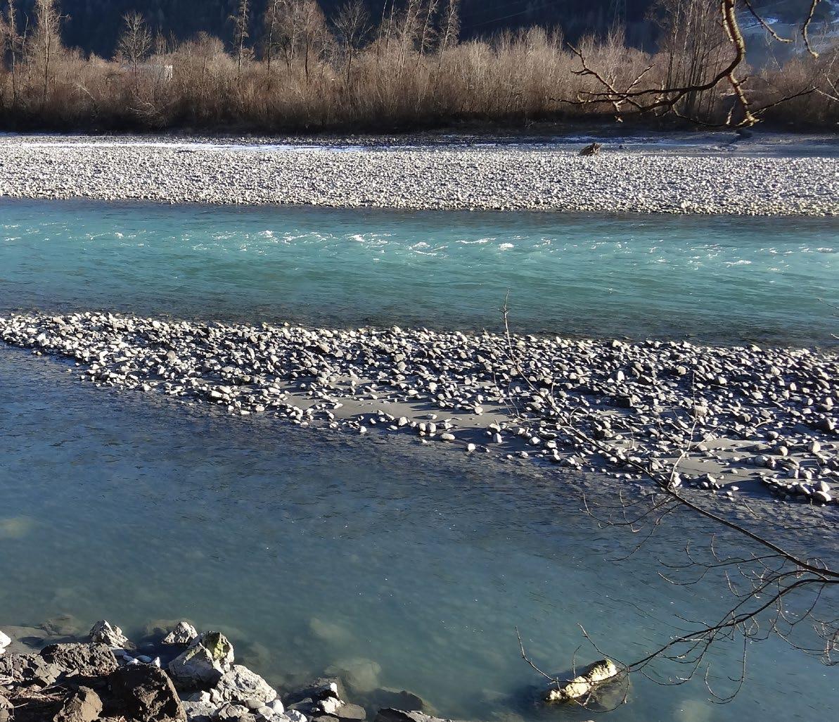 Gegen Ende führt ein Hochwasser fast keine Schwebstoffe mehr mit. Es hinterlässt blankgeputzte Steine und sauber gewaschenen Sand. Es formt damit einen vielgestaltigen Lebensraum und ein ideales Laichsubstrat für kieslaichende Fische.