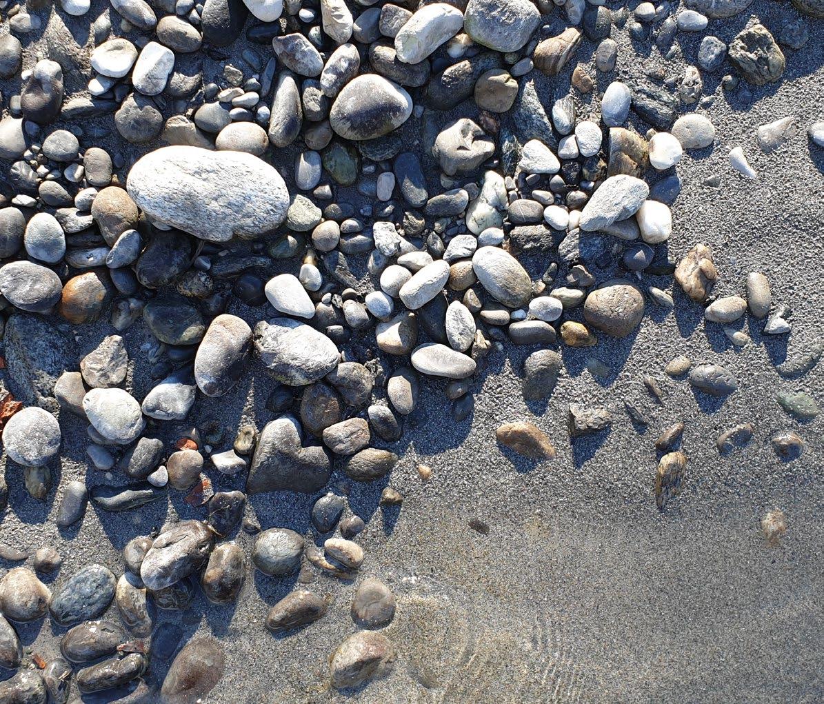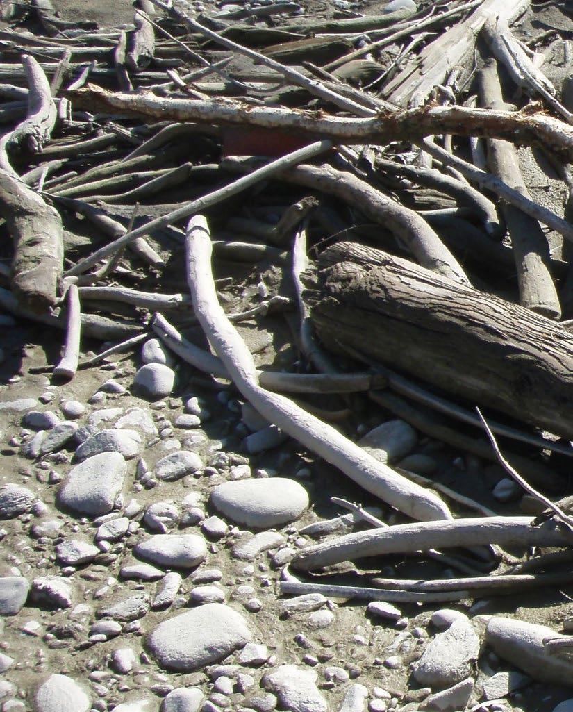 Eine Schotterbank lässt sich lesen wie das Protokoll der letzten Hochwasser. Fließendes Wasser sortiert je nach Durchflussmenge und Schleppkraft das mitgeführte Geschiebe. Neben Fraktionen mit großen Steinen liegen Flächen mit feinkörnigem Schotter oder Sand.