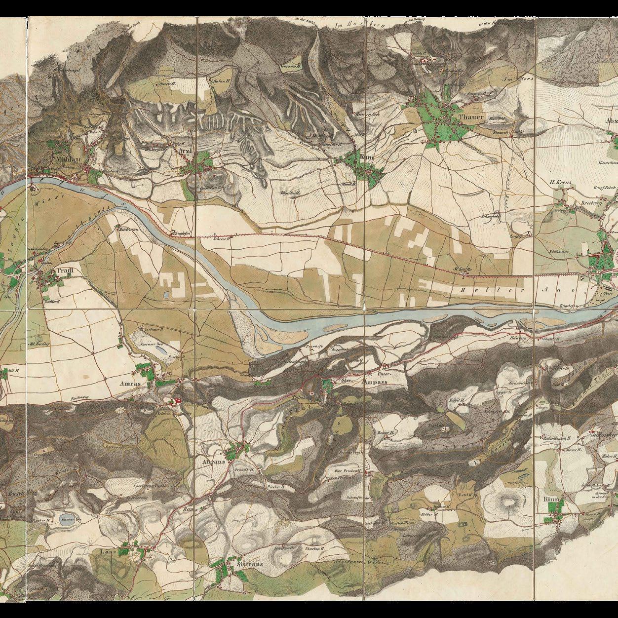 Der namensgebende Inn war zwar kein unberührter Naturfluss mehr, dennoch nahm die weitläufige Flusslandschaft im Inntal noch einen großen Teil des Talbodens ein und war bis zu dreimal so breit wie heute. Allerdings waren Begradigung und „Meliorierung“ der Flüsse bereits im Gange, um die Naturgewalten zu zähmen und in „geordnete“ Bahnen zu lenken.