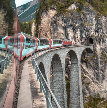 Entdecke die Schweiz im spektakulären Glacier Express, dem langsamsten Schnellzug der Welt.