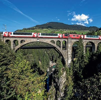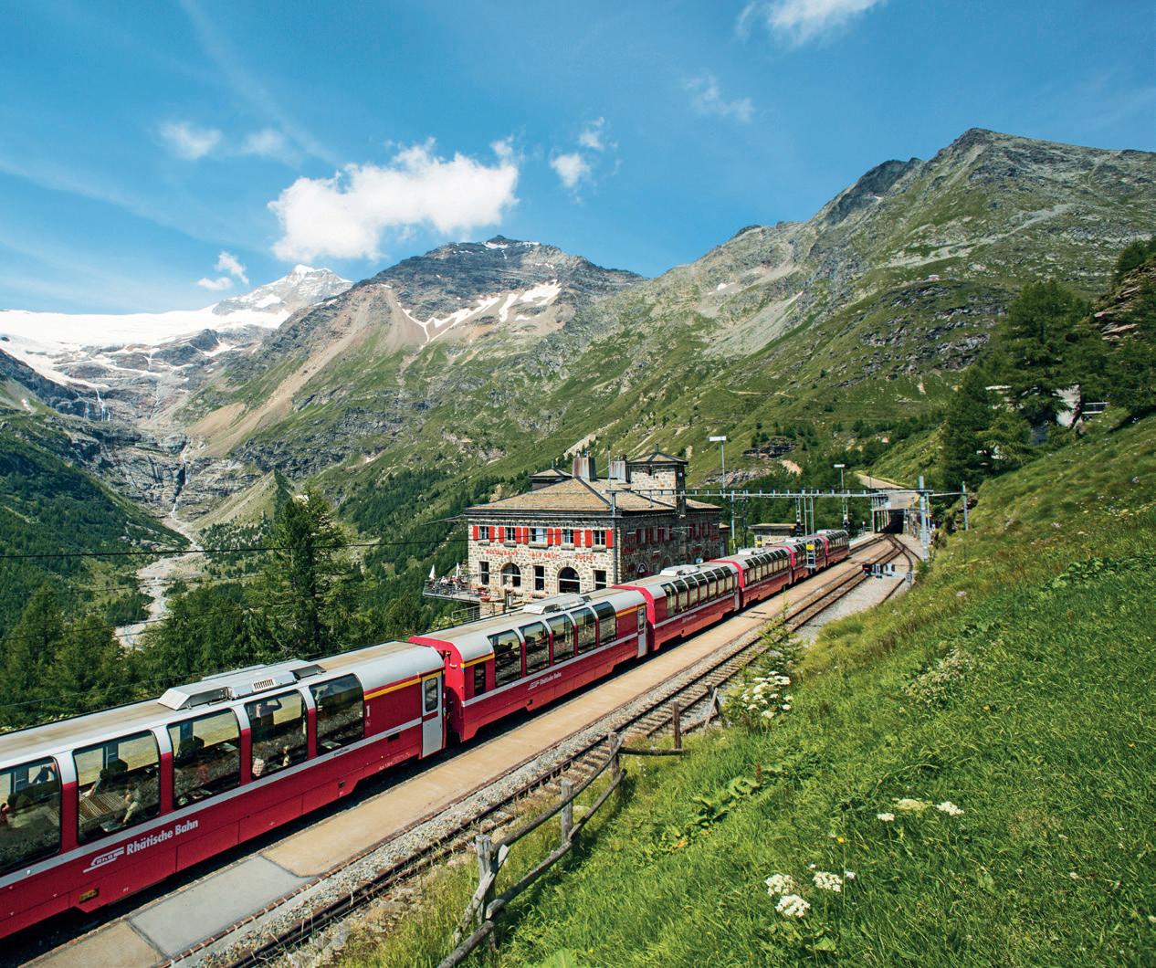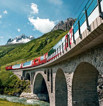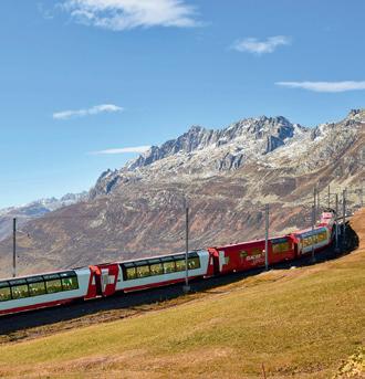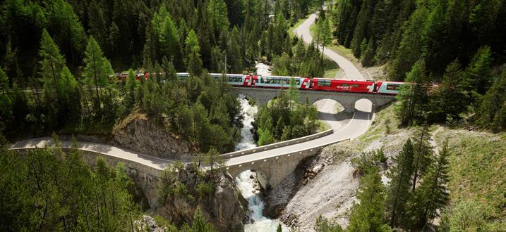 «Es mag überraschend klingen, dass ein Expresszug acht Stunden für 290 Kilometer braucht. Doch genau das macht die Reise auf dieser legendären Strecke im Glacier Express zu einem besonderen Abenteuer. Die Route beeindruckt durch ihre Vielfältigkeit: schneebedeckte Gipfel, kristallklare Seen, blühende Wiesen, Wälder und rauschende Bäche. Auf der Fahrt über 291 Brücken und durch 91 Tunnels werden enorme Höhenunterschiede überwunden.