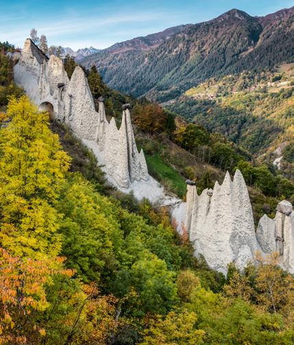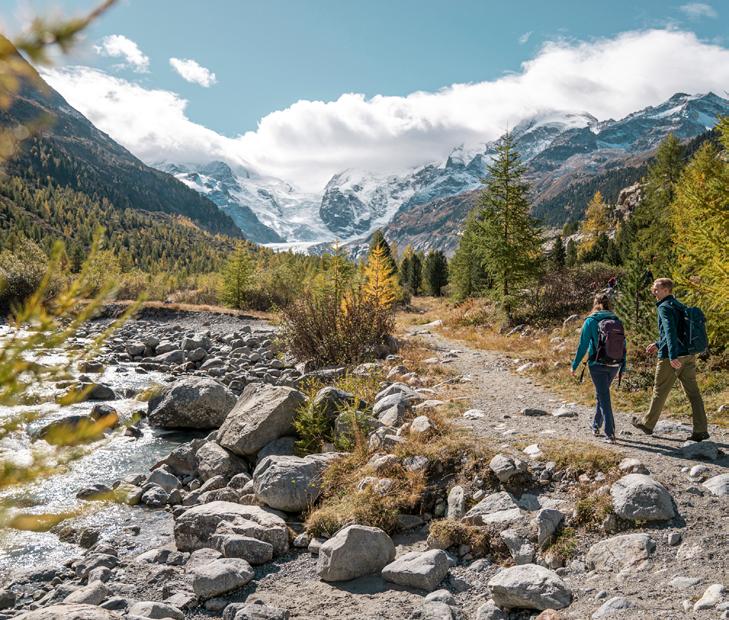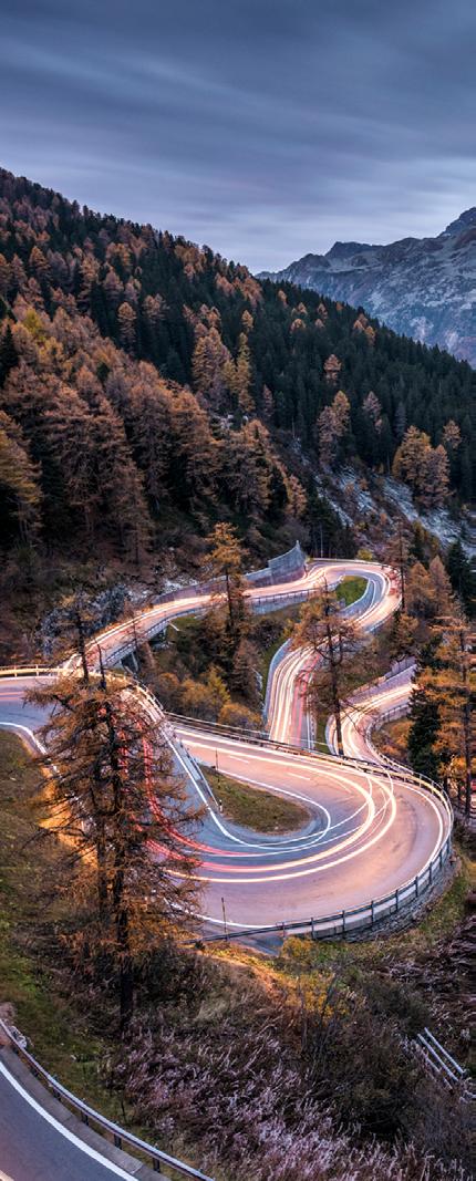 Tutaj czuje się moc: chyba na żadnej innej przełęczy nie widzieliśmy tylu masztów i przewodów elektrycznych. Jesienią za to dominują ciepłe barwy modrzewi – o tej porze od strony Ticino wędrowałam kiedyś z fotografami i tylko godzina marszu dzieli drogę od schronisk górskich, gdzie czas płynie w wolniejszym rytmie.