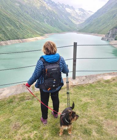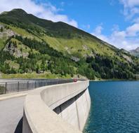 Dolinę odchodzącą w bok tuż przed tunelem św. Gotarda kończy potężna zapora. Parkujemy w jej pobliżu, przy pensjonacie z nowoczesnymi pokojami i restauracją z tarasem (tam nocowaliśmy). Jezioro jest bardzo duże, otoczone skałami i wodospadami. Można je obejść w 4 godz., ale to wymaga już więcej wysiłku – my ograniczamy się do spacerów po koronie zapory.