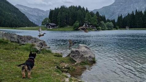 Albo, jak my, podjechać busikiem (12 CHF w jedną stronę, 18 CHF w obie, psiak 3,50 CHF), który trzeba wcześniej zamówić. Jeszcze 30 min wędrówki szlakiem po kamieniach i jesteśmy na brzegu. Zachwyt to za mało powiedziane. W okolicy odwiedzamy jeszcze podobnie urokliwe jeziorka: Lagh da Val Viola i Lagh da Scispadus.