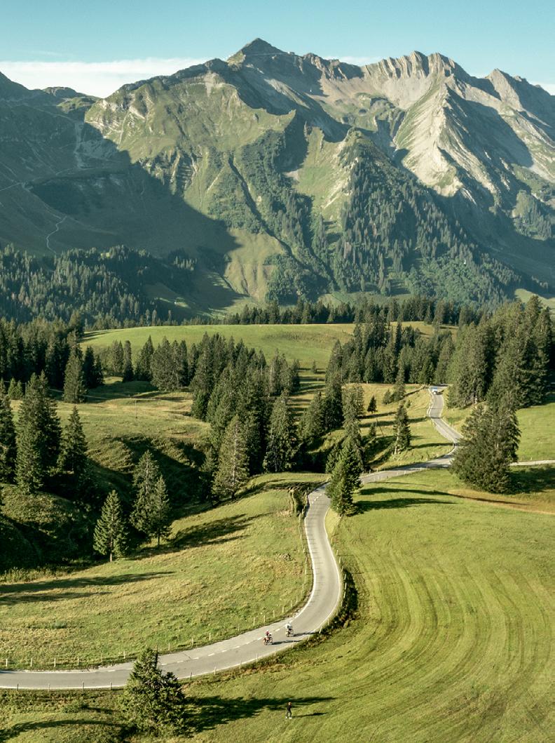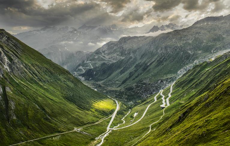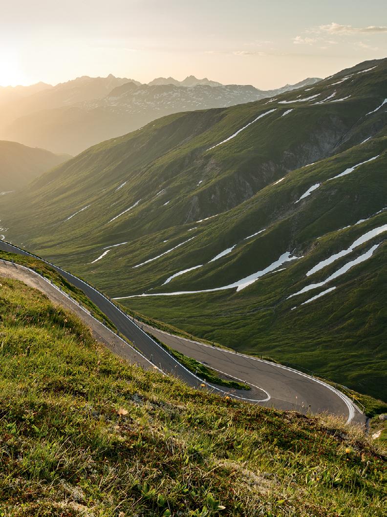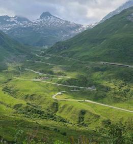 Najpierw czeka nas wiele zakrętów, a potem ciągnie się długi piękny odcinek plateau: to Urnerboden, gdzie dominują krowie dzwonki i ich właścicielki. Potem znowu seria zakrętów i jesteśmy na górze, na 1948 m n.p.m. Zjazd prowadzi znacznie węższą drogą, z widokami na wodospady. To jedna z ulubionych przełęczy rowerzystów: świadczą o tym nie tylko profesjonalne stacje ładowania rowerów elektrycznych.