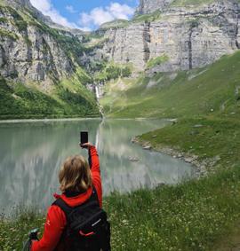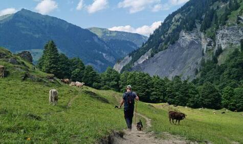 Dwa wodne miejsca na nietrudną wędrówkę, która startuje na parkingu leśnym Laui za wioską Unterwasser. Jeziorko jest wprawdzie malutkie, ale na tle masywu Säntis w regionie Appenzell prezentuje się malowniczo. Dochodzimy do niego asfaltową leśną, apotem polną drogą, przy której pasą się krowy – Elek czuł do nich respekt! Z parkingu niedaleko jest też do wodospadu (znacznie krótsze podejście jest z wioski), który huczy i szumi w kamiennej rozpadlinie. Gdy wchodzimy do schodów wykutych w skale, na