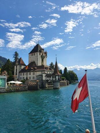 Cel naszego spaceru malowniczym brzegiem jeziora: malutka wioska na tle gór. Wybudowano tutaj kościół, kilka hoteli i przystań statków, ale i tak najważniejszy jest widok na jezioro. Po drodze obowiązkowo zatrzymujemy się na plaży w Beachbar Isletten o bardzo karaibskim klimacie.