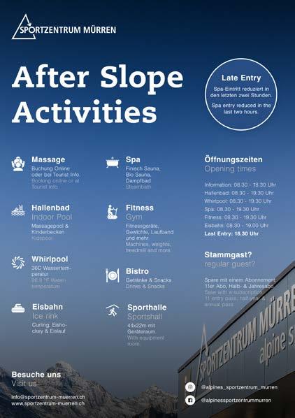 Weitere Auskünfte am Schalter von Mürren Tourismus im Alpinen Sportzentrum