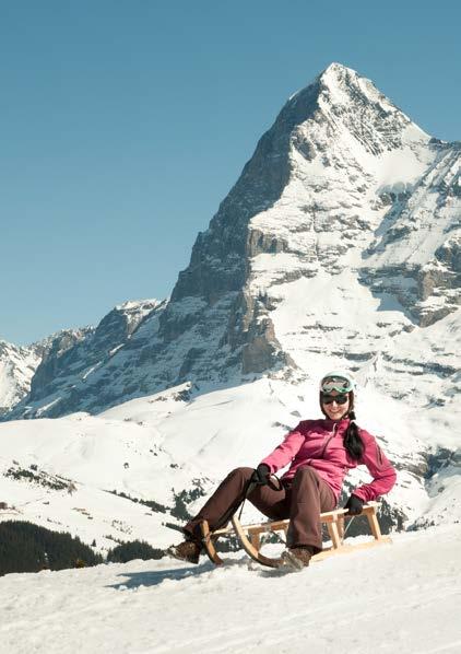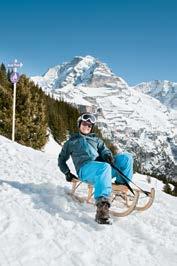 Schlittelsafari – Auf den breiten sonnigen Schlittelpisten um Mürren Tobogan Safari – on the wide and sunny sledge runs around Mürren